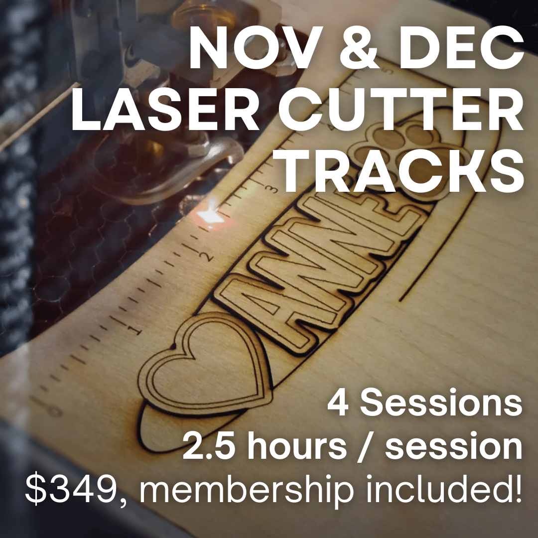 The Lasers at Maker Works are incredibly versatile tools, perfect for creating or personalizing items. This bundled track teaches everything you need to know from design to machine operation as you create and customize three projects!